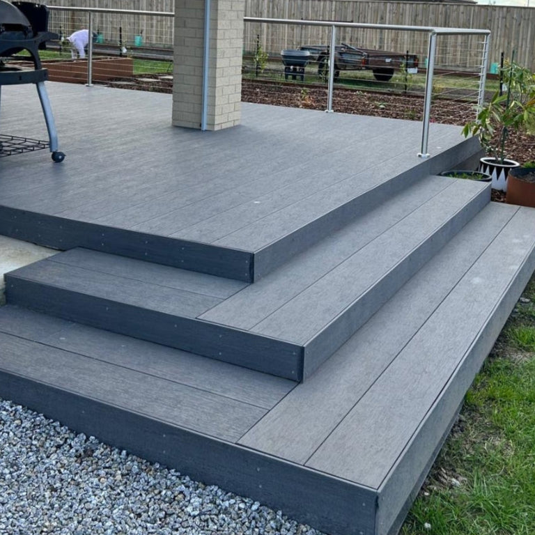Enjoy the beauty and usability of natural decking, minus the constant up keep. Composite decking by Ausdecking creates all of the practical uses and beauty of natural decking, without the back breaking up keep. Our stainless steel hidden clip system keeps the screws and clips hidden inside of the decking. This means no more of those ugly surface screws that can pop out and catch on your feet. Spend your weekends enjoying your new composite decking with Ausdecking.